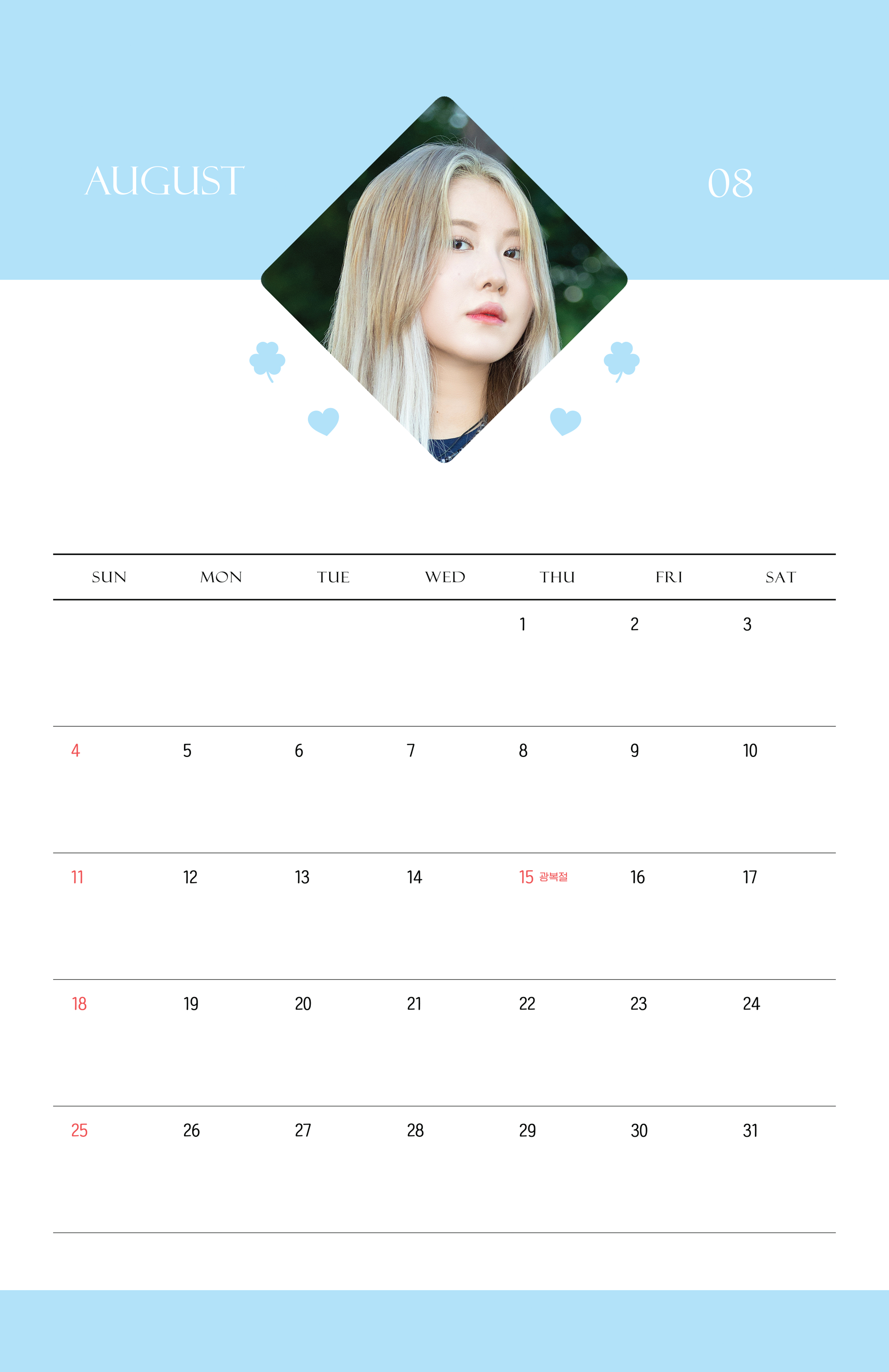 8월 August 2024 YERIN BAEK CALENDAR by 지누