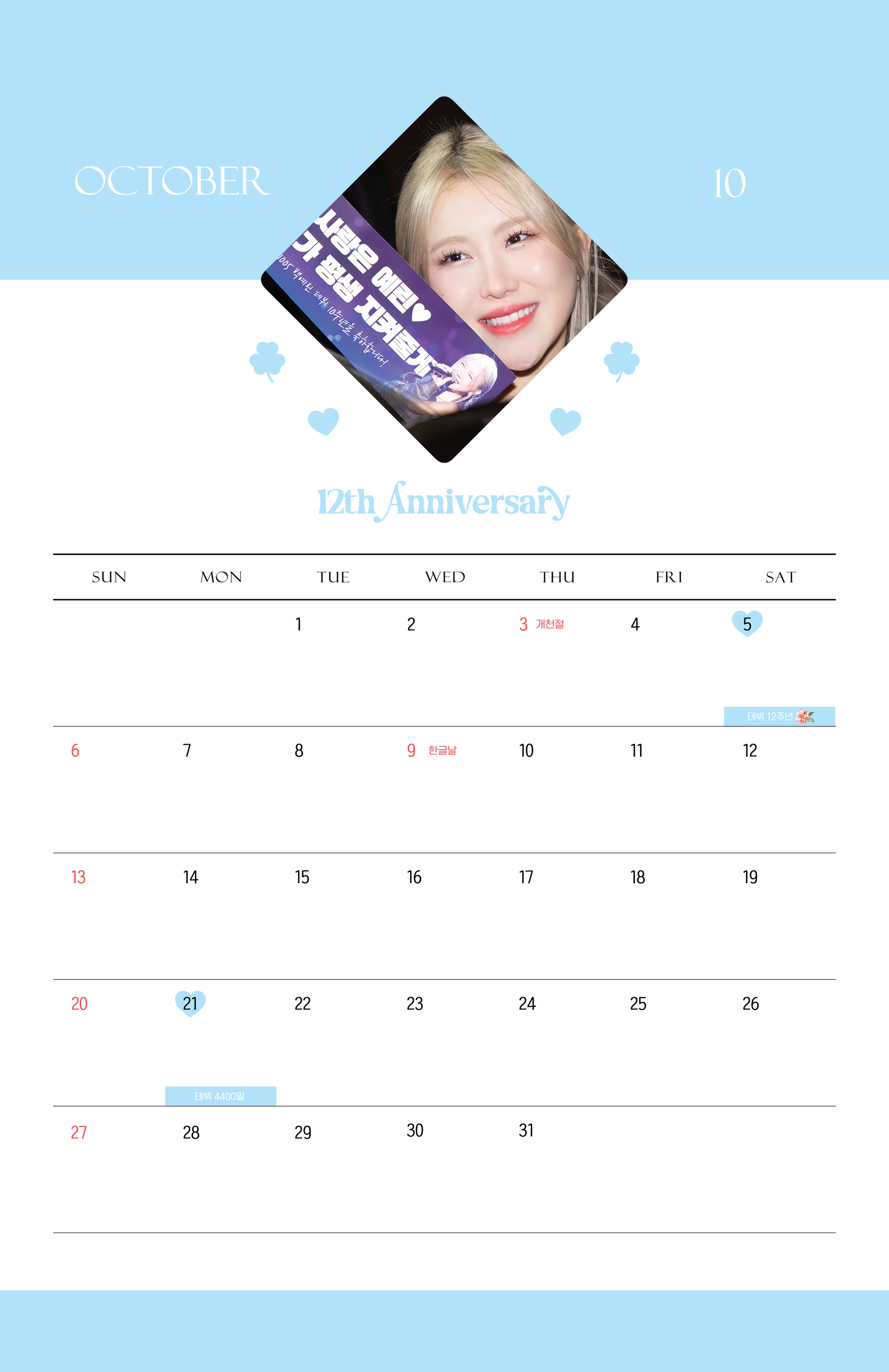 10월 October 2024 YERIN BAEK CALENDAR by 지누
