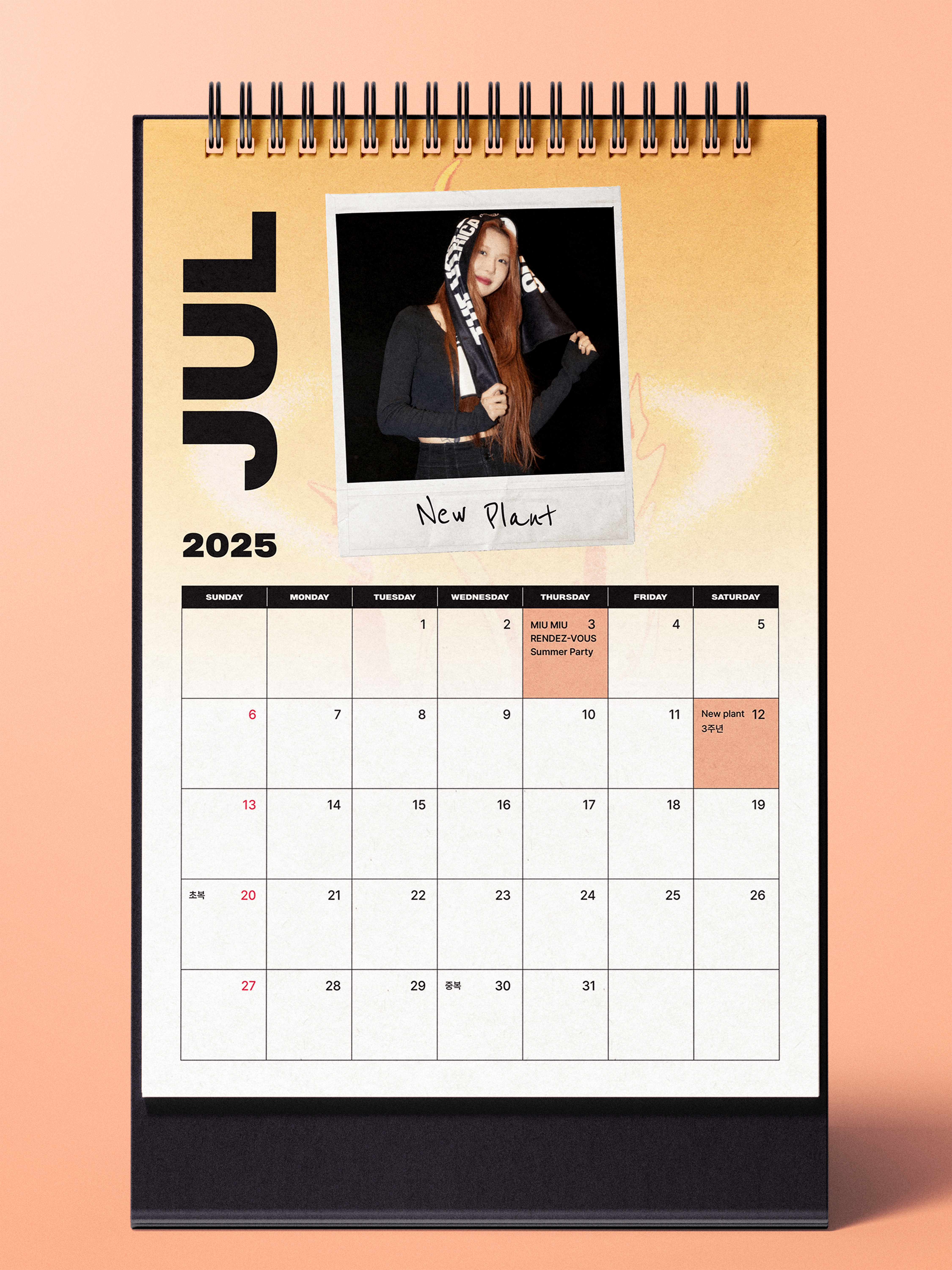 7월 July 2025 YERIN BAEK CALENDAR by 지누